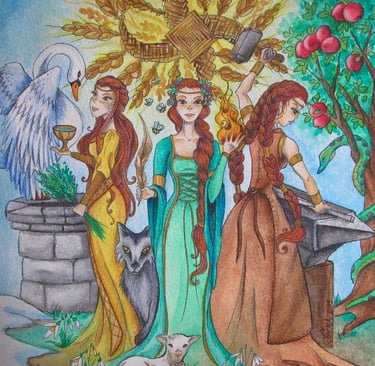 Ces trois aspects, intimement liés, font de Brigid une figure centrale de la spiritualité celtique. Elle unit les éléments du feu, de la forge et de la poésie dans une même entité divine.